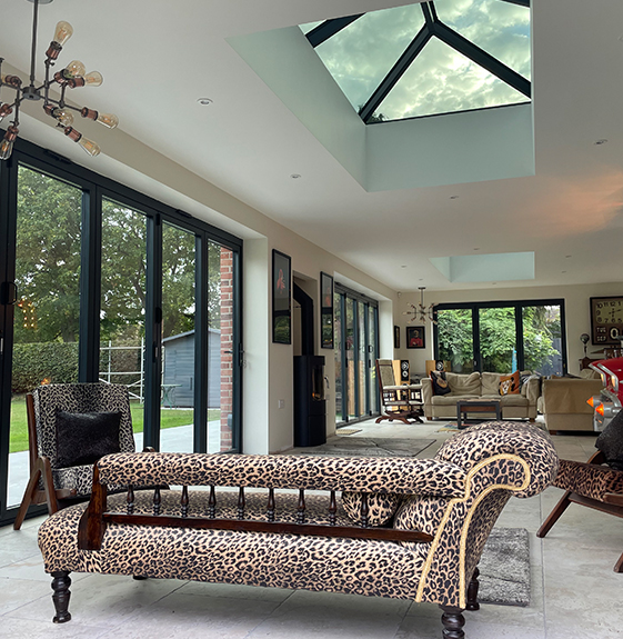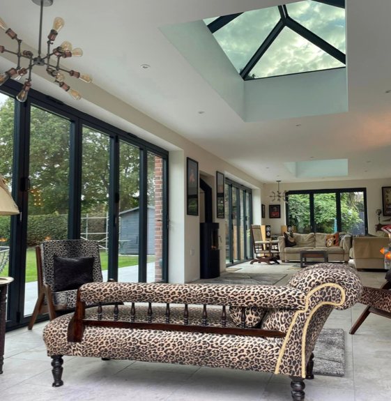 It was a pleasure to be part of this amazing extension on a bungalow in Elford. 5 bifolding doors and 3 aluminium roof lanterns all from sheerline systems in the always popular anthracite grey. To keep the heat out we’ve gone for ambi ultra self cleaning roof glass and saint gobain SKN176 glass on the bifold doors, both coatings are extremely effective at reducing heat and preventing bleaching from the sun.