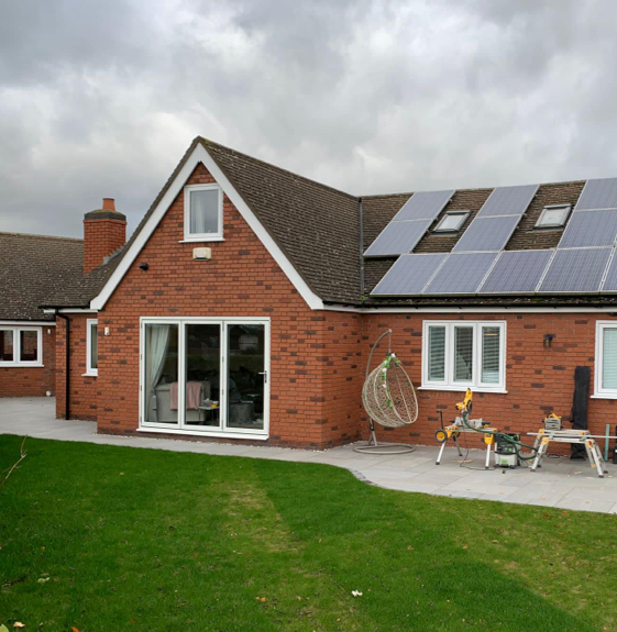Here’s a beautiful job completed this autumn on a bungalow and annex in Coventry. A great mix of our products and services on show here. Supply and installation of composite doors, UPVC patio sliding doors, residence R7 flush casement windows, aluminium bi-folding doors as well as new soffit fascia and guttering.