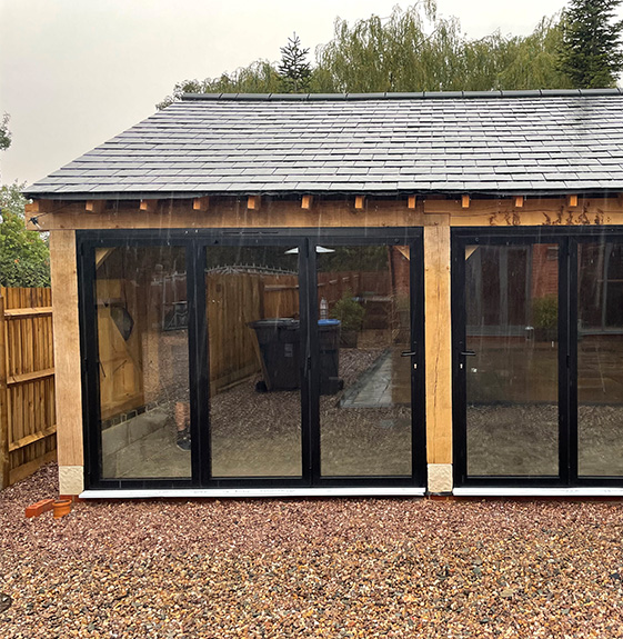 This is the second oak framed barn we’ve installed black aluminium bifolds into and they really do contrast well with the woodwork. A recommendation as usual from the one we did last winter, it’s how we secure 100% of our work so doing a great job is essential for our business.